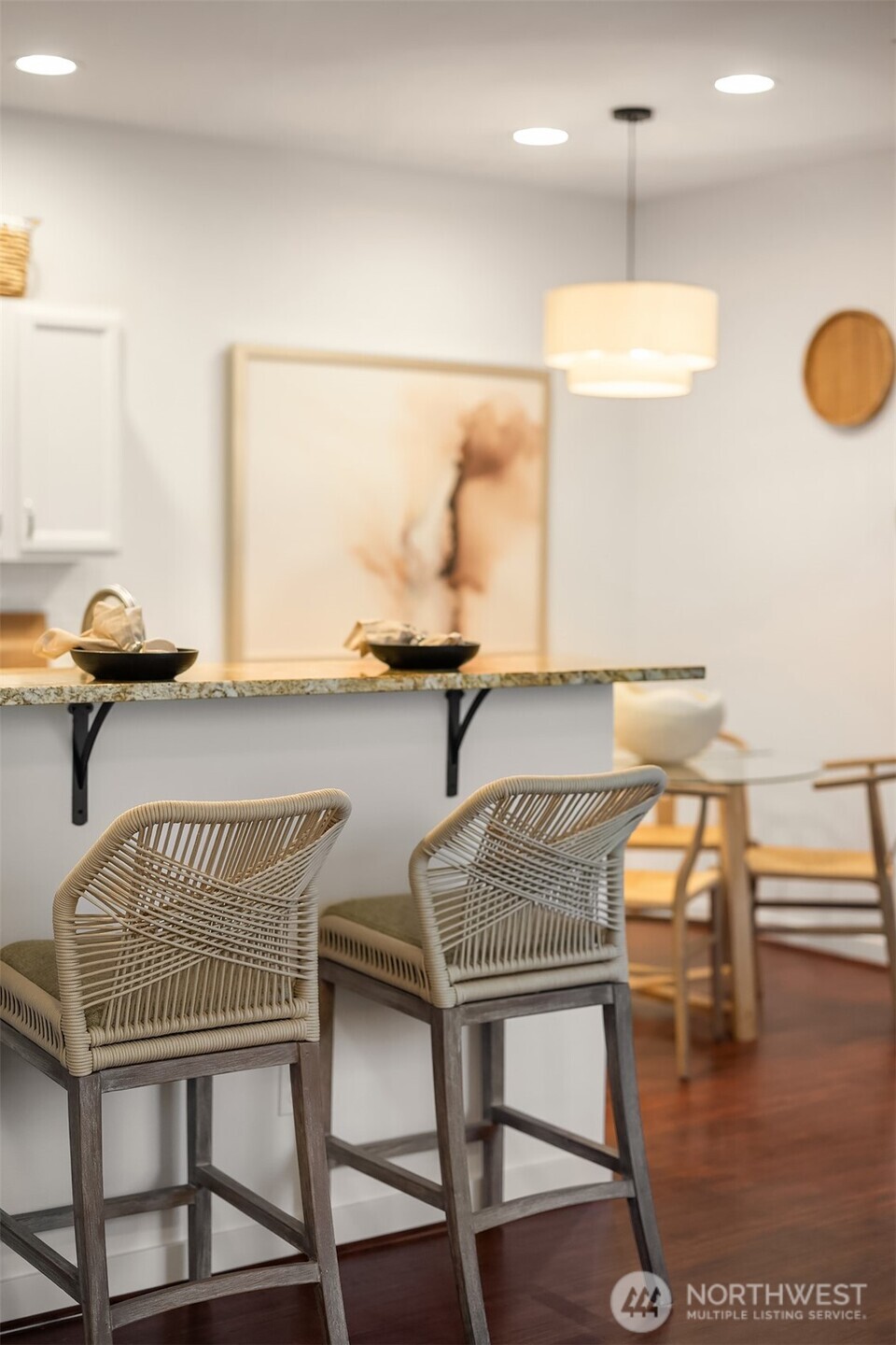 Soft hues and warm light grace this one-of-a-kind abode at Villagio Townhomes in Issaquah Highlands! Enjoy a vibrant setting next to Grandview Park, Kirk Park, Bark Park, and nearby nature trails. This home features impressive upgrades, including a remodeled bathroom, new flooring, designer lighting, and fresh interior paint throughout. A stylish kitchen with granite countertops, tile backsplash, and newer stainless steel appliances. Awesome layout - open kitchen and living room, cozy breakfast nook, three bedrooms on the top floor, and a spacious laundry room. Gorgeous primary suite featuring a Juliet balcony with French doors, ultra-high vaulted ceiling, sizable walk-in closet, and an updated bath. Rare oversized front patio provides the perfect space to relax and unwind. A side-by-side two-car garage and low HOA dues tops it all off! Live well at Villagio in Issaquah Highlands!