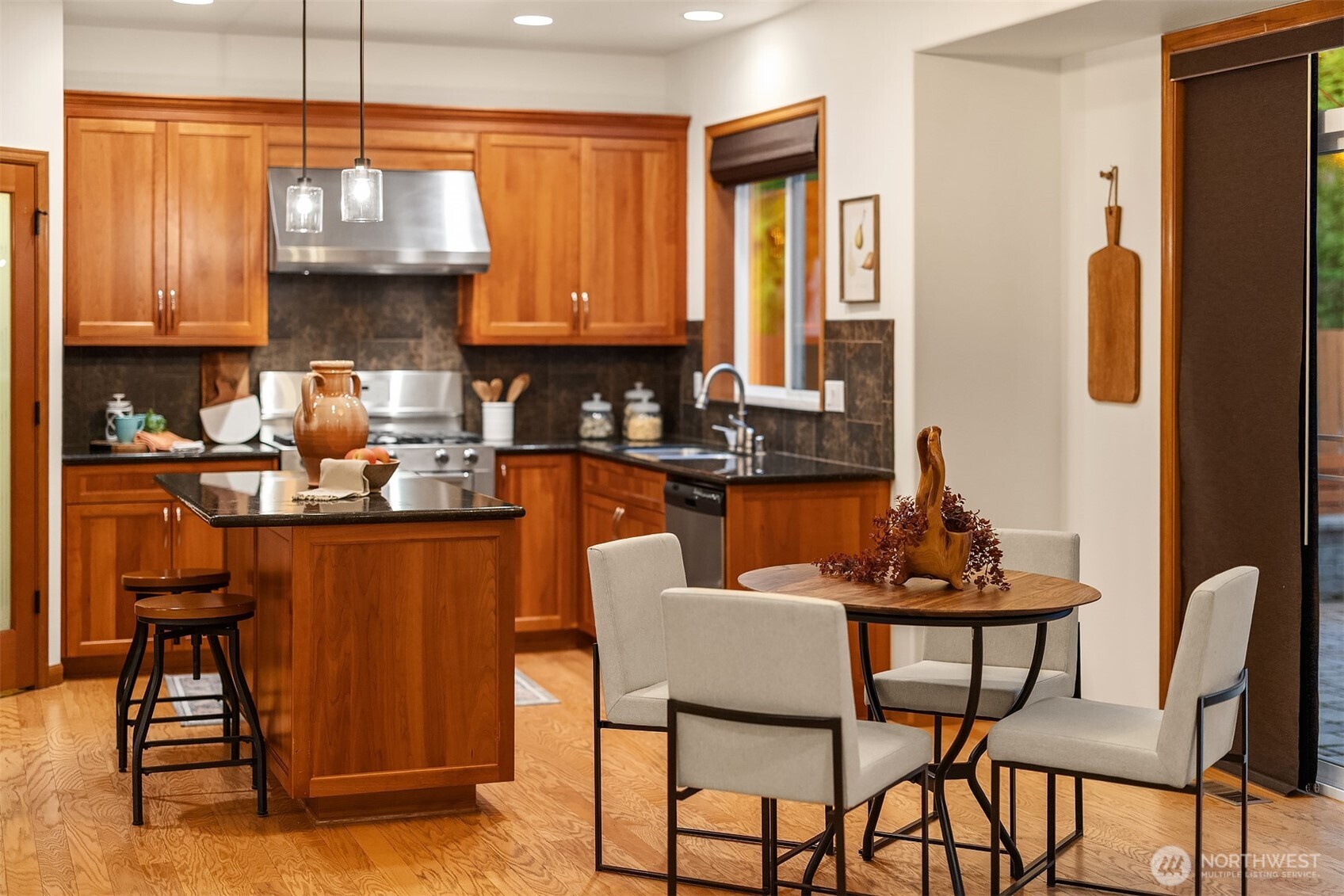 A refined retreat where thoughtful design, form, and function meet to create warm, elevated living spaces. Featuring a brand-new roof (2026), this home showcases an exceptional low maintenance backyard with a custom cobblestone patio, covered BBQ station, inlaid landscape lighting, and an all-weather awning--perfect for year-round entertaining. Inside, enjoy A/C, new paint, plush new carpet, and updated lighting throughout. A tailored layout featuring vaulted ceilings, a dedicated office, formal dining, and an open-concept kitchen that flows seamlessly into a spacious family room. Oversized bonus room or fourth bedroom adds flexibility for modern living. Upstairs, the spacious primary suite is a serene escape, complete with a five-piece bath and walk-in closet, accompanied by two sunlit bedrooms. Natural tones and timeless finishes complement the home's peaceful setting along a private greenbelt. Ideally located near top-rated schools, parks, shopping, and dining, with quick access to I-90 for an easy commute. It's the perfect place to be!